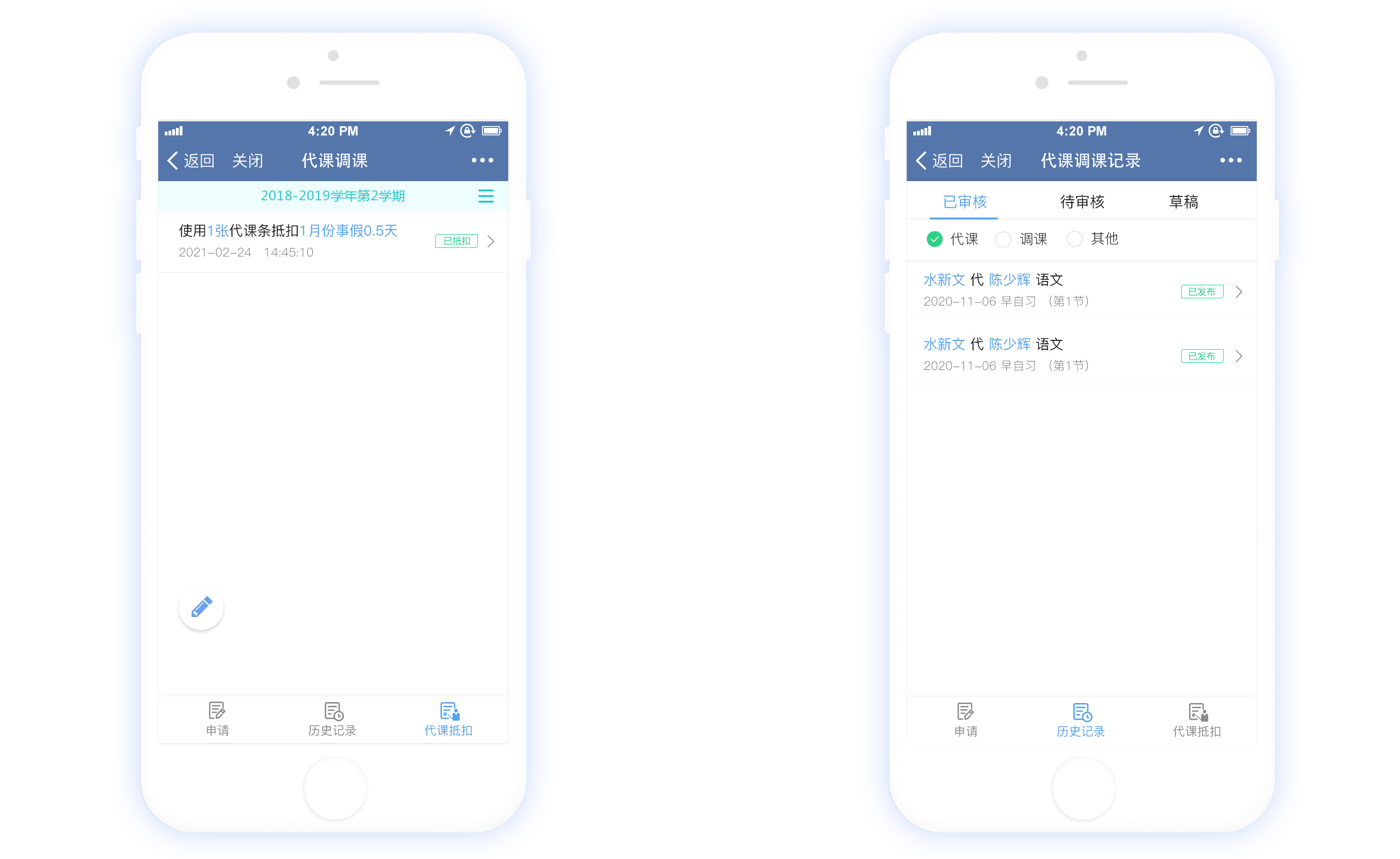 提供代調課申請(qǐng),代調課審批,代調課發布。